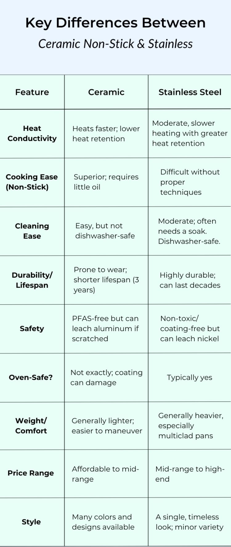These points are central to understanding ceramic vs stainless steel cookware safety. If you control heat and avoid damaged pans, both can be safe choices.