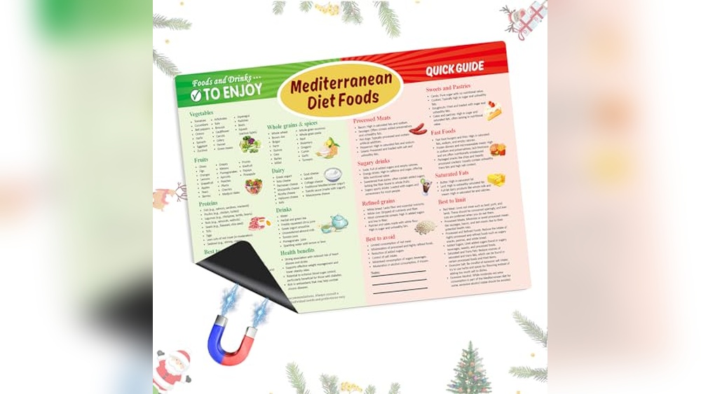 The Mediterranean Diet Magnetic Cheat Sheet – Food List, Meal Plan & Grocery Chart is perfect for individuals who want to embrace a healthier lifestyle through the Mediterranean diet. Ideal customers include busy home cooks, health-conscious individuals, and anyone looking for a convenient, quick reference guide to maintain balanced eating habits without spending too much time planning meals. This magnet serves as an excellent tool for beginners and seasoned dieters alike who want to keep essential diet information right on their kitchen fridge.